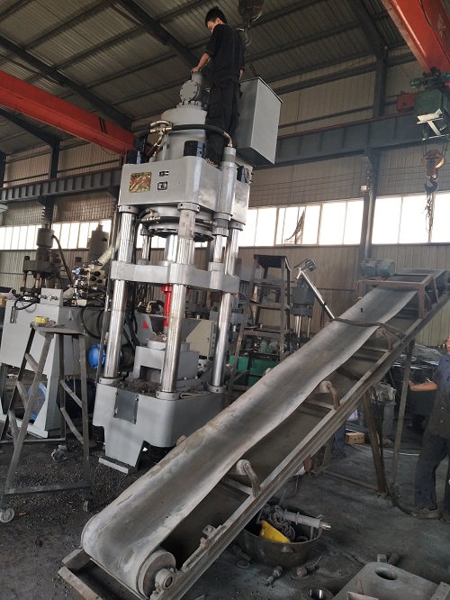 压块机领域|压块机原理|冷压压块机作用机架部分采用整体铸钢件,杜绝了钢板焊接件的开裂,提高了设备的可靠稳定性和使用的寿命。采用先进的液压传动技术及叠加组合阀块,使用优良的耐磨油封,油从而保证连续运转不减弱油缸压力,经久耐用,运行平稳;电脑控制,自动化程度高,故障率低,维护容易等。根据用户情况另带螺旋自动送料器、链条式自动出料器,降低了工人的劳动强度。