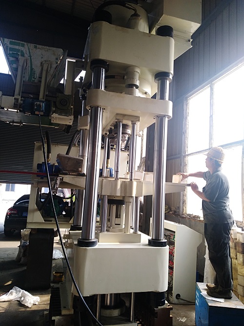 性能特点:计算机优化设计。生产效率高。经济、实用;液压控制件采用插装阀或插装阀集成系统,三梁四柱式结构,简单、可靠,使用寿命长,液压冲击小,减小了连接管路与泄漏特点;独立的电气控件系统,工作可靠,动作直观,维修方便;采用PLC;按钮集中控制,具有调整(双手单次循环),自动循环二种操作方式。可实现定程、定压二种成型工艺,并且具有保压延时等功能;工作压力、行程根据工艺需要在规定范围内可调。