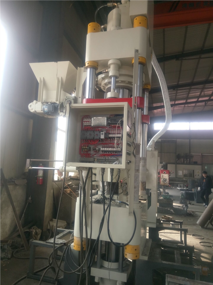 我厂生产的小功率、大压力液压牛羊全自动舔盐块压块机,为四柱式液压机,压力大、准确度高。此压机采用先进的机、电、液、气一体化控制,具有自动送料装置,浮动加压,使制品成型密度*有效控制,液压系统采用先进的插装阀块,保证液压机连续,频繁的稳定工作;装料、成型、脱模三位置的机械档块定位及无级调整机构,确定了制品的几何尺寸的稳定可调。配有油液冷却装置。采用PLC及人机界面集中控制,同时装有机械限位装置,从而保证制品的一致性。