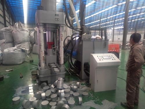 “鑫源”牌铝屑压块机主要是用于将铝锯屑、铝车屑原料通过高压直接冷压成3~5公斤的圆柱饼块,整个过程不需加温、添加剂,或其他工艺,以便于储运及减少回收再利用过程中的损耗。适用于铝合金型材厂、铸铝厂、汽配、五金等相关企业。