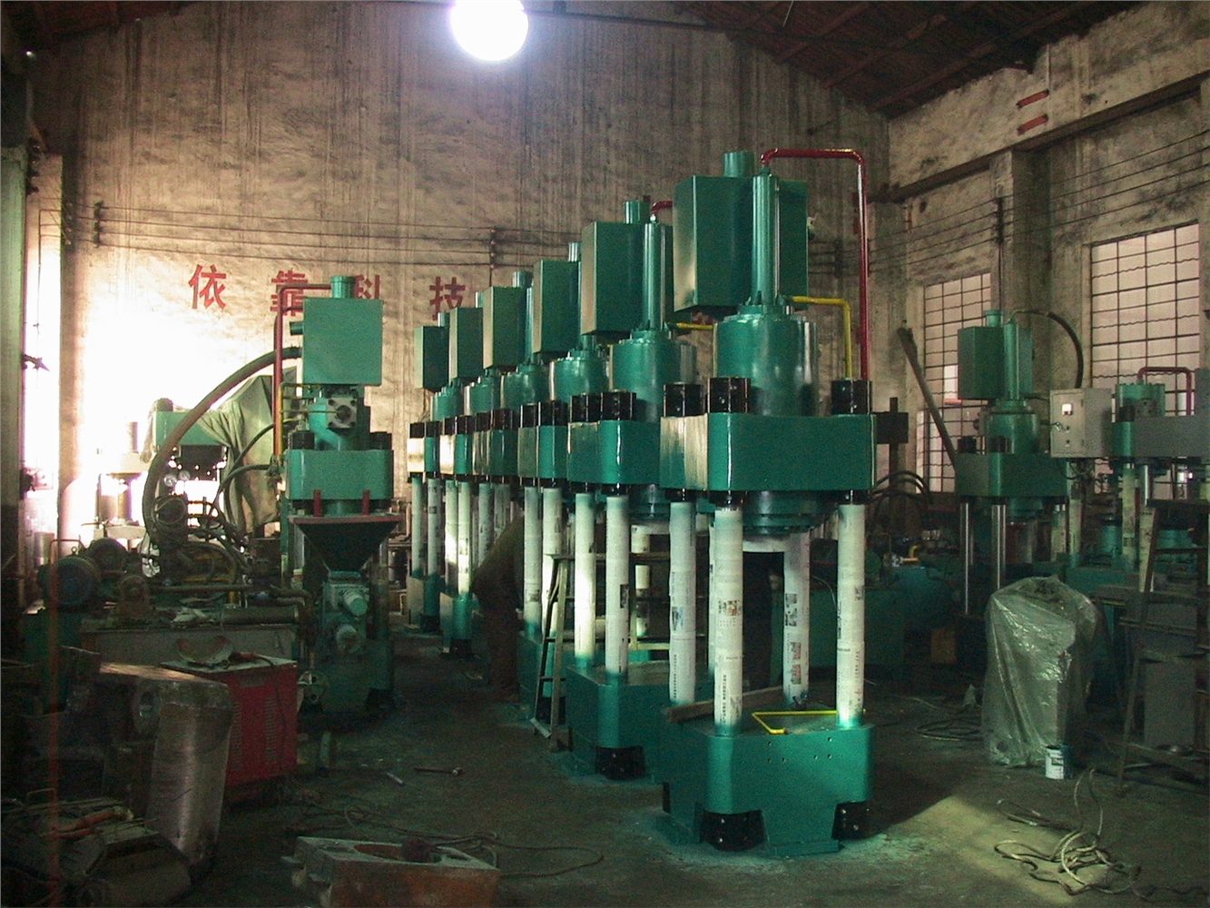 1000吨铁屑压块机就的同步精度高,系统的效率也就越高,容积式同步回路是将油压机两相等容积的油液分配到尺寸相同的两执行元件,实现两执行元件的同步,这种回路允许较大偏载,由偏载造成的压差不影响流量的改变,而液压机只有因有油液缩和泄漏量造成的微量偏差。因此,需要保证1000吨铁屑压块机的同步精度,以此来提高工作效率。