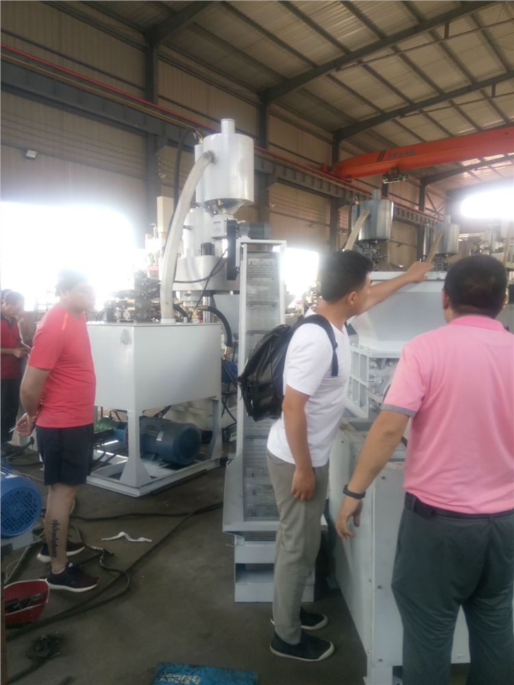 压块机鑫源液压为用户压制手机壳——用户验机提货现场——