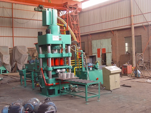 全自动铁粉压块机 本机为四柱式压力机,采用优化的液压传动方案,具有强大的动力,准确的定位和完善的动作组合。本机故障率低,发热量小,生产率高,节电耐用。
