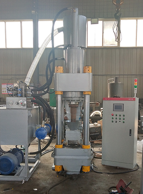 在不加任何添加剂的情况下,可将各种颗粒、粉末状的铸铁、铝、铜、镁、钛、钼等压制成高密度压块,以便于运输、投炉。直接投炉冶炼不但保障了原有材质不变,而且投炉回收损耗不超过10%。成型的同时也确保了原有材质的不变,对于特别材质的铸件,回收意义更大。随着生产力的提高及市场需求的扩展,也可应用到半导体材料、非金属材料的压块成型上。