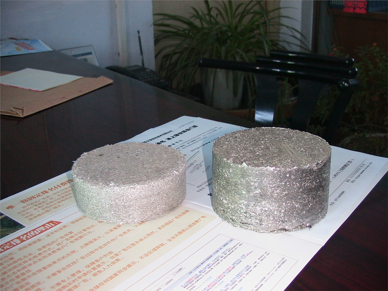 废旧铜 铝屑压块机将铜屑、铝屑、不锈钢等原料通过高压直接冷压成2~3公斤的圆柱饼块,以便于储运及减少回收再利用过程中的损耗,并且在压制过程中可以回收铜屑等里面的大部分加工油液,起到了节能环保,降低铸造用户的的成本,提供用户的经济产量。