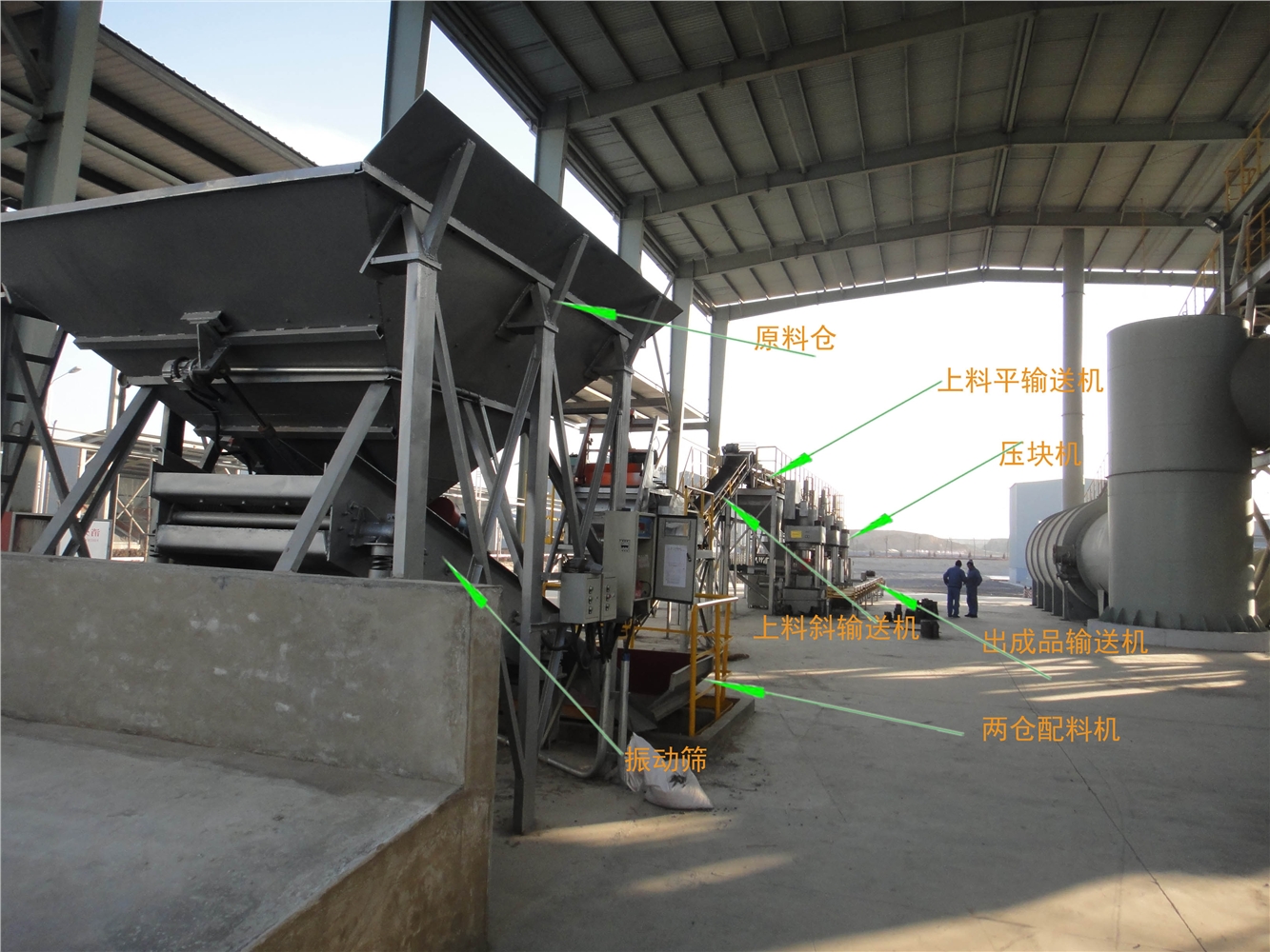 鑫源液压公司为太原用户设计一套700T压块机单台生产输送工艺流程