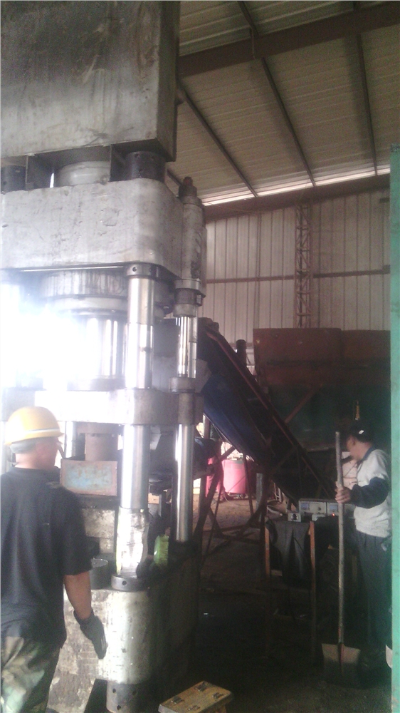 郑州钢屑压块机上下横梁由立柱和螺母联接,主液压缸前端用法兰联接在横梁底部。模具固定在下横梁上,模套固定在模具内。冲头直接联接在油缸活塞杆顶端。模套和冲头均可拆卸和更换。有一抽板缸位于主机下模具后面。抽板缸前位时与模套形成模腔底部,后位时底部形成空间,利于饼块落下,同时具有推饼出模具底部的功能。螺旋加料装置和加料斗组成自动加料机构。机器的加料由螺旋加料装置完成。充液系统位于横梁侧面,以补充主油缸快速前进所需的油液。