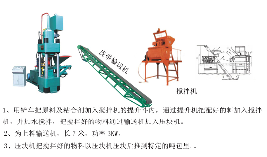 鑫源牌金属屑压块机新工艺 技术 配置:整体铸钢,先进的液压传动技术及叠加组合阀块,使用优良的耐磨油封,油缸采用国内新高科技工艺加工组装,从而保证连续运转不减弱油缸压力,经久耐用,运行平稳;电脑控制,自动化程度高,故障率低,维护容易等。根据用户情况另带螺旋自动送料器、链条式自动出料器,降低了工人的劳动强度。