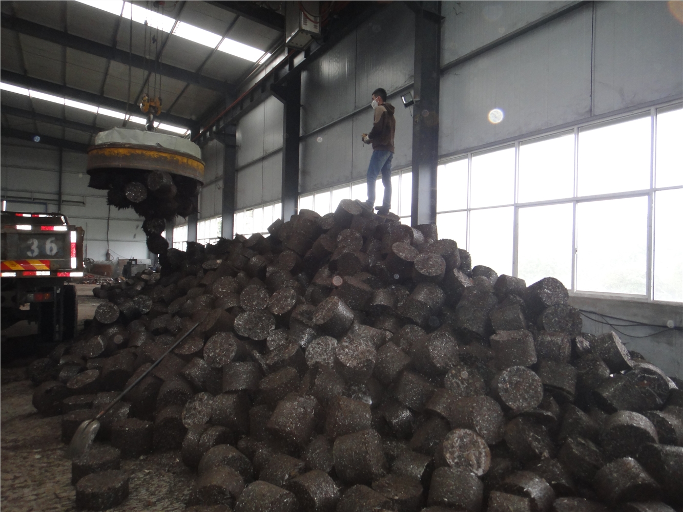 2.碎屑压块机设备采用双向浮动加压,使铝饼的上下密度保持一致,有效的保证了铝屑饼的高密度及密度的一致性;铝屑饼的孔采用抽芯缸,保证了孔的边缘几何尺寸非常完善;从而使得铝屑饼的外观几何尺寸比同类产品高一个档次。